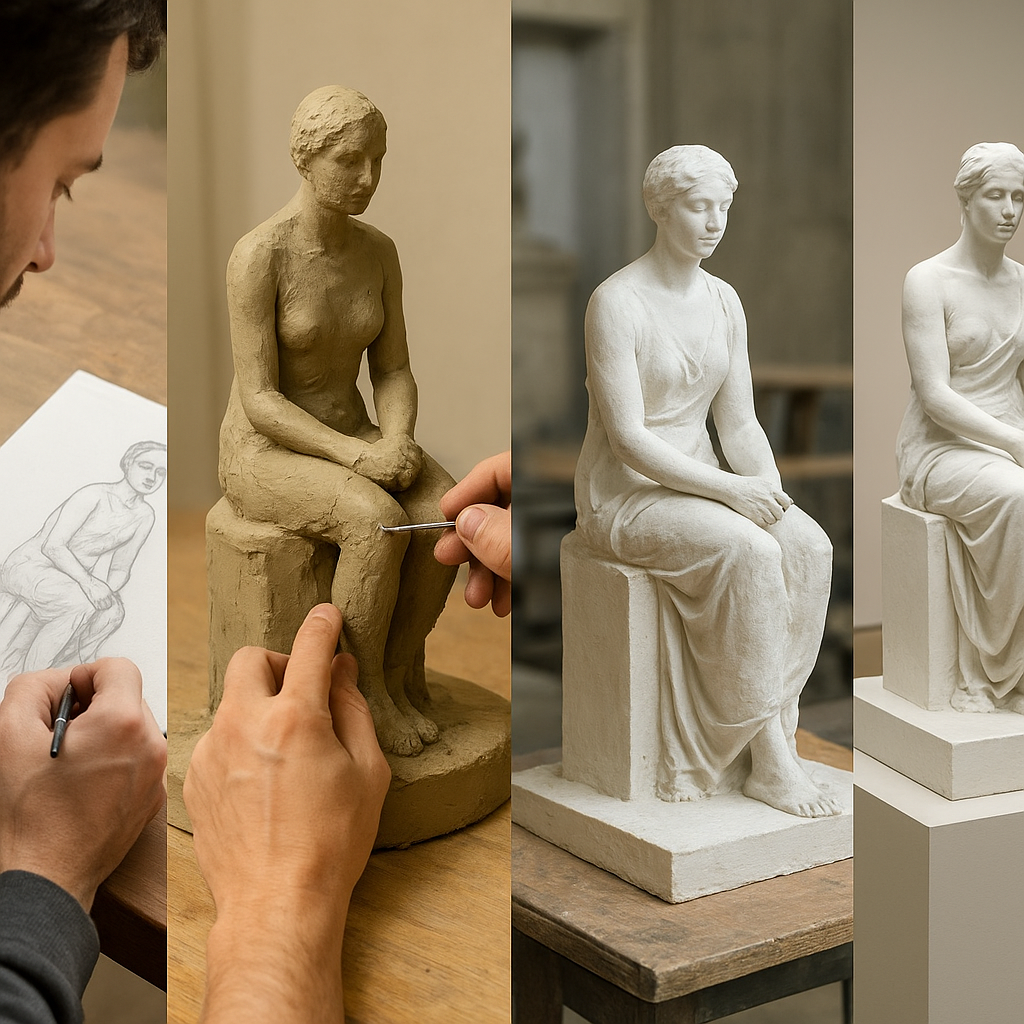 Artysta zwykle rozpoczyna pracę od analizy własnych inspiracji i potrzeb. W tym momencie najważniejszą rolę odgrywa idea – bez niej nie ma autentycznej rzeźby. Często stosowaną praktyką jest stworzenie serii szkiców lub makiet w małej skali. Mogą to być proste wytłaczanki z gliny lub kartonu, które pozwalają uchwycić proporcje i ogólną formę.