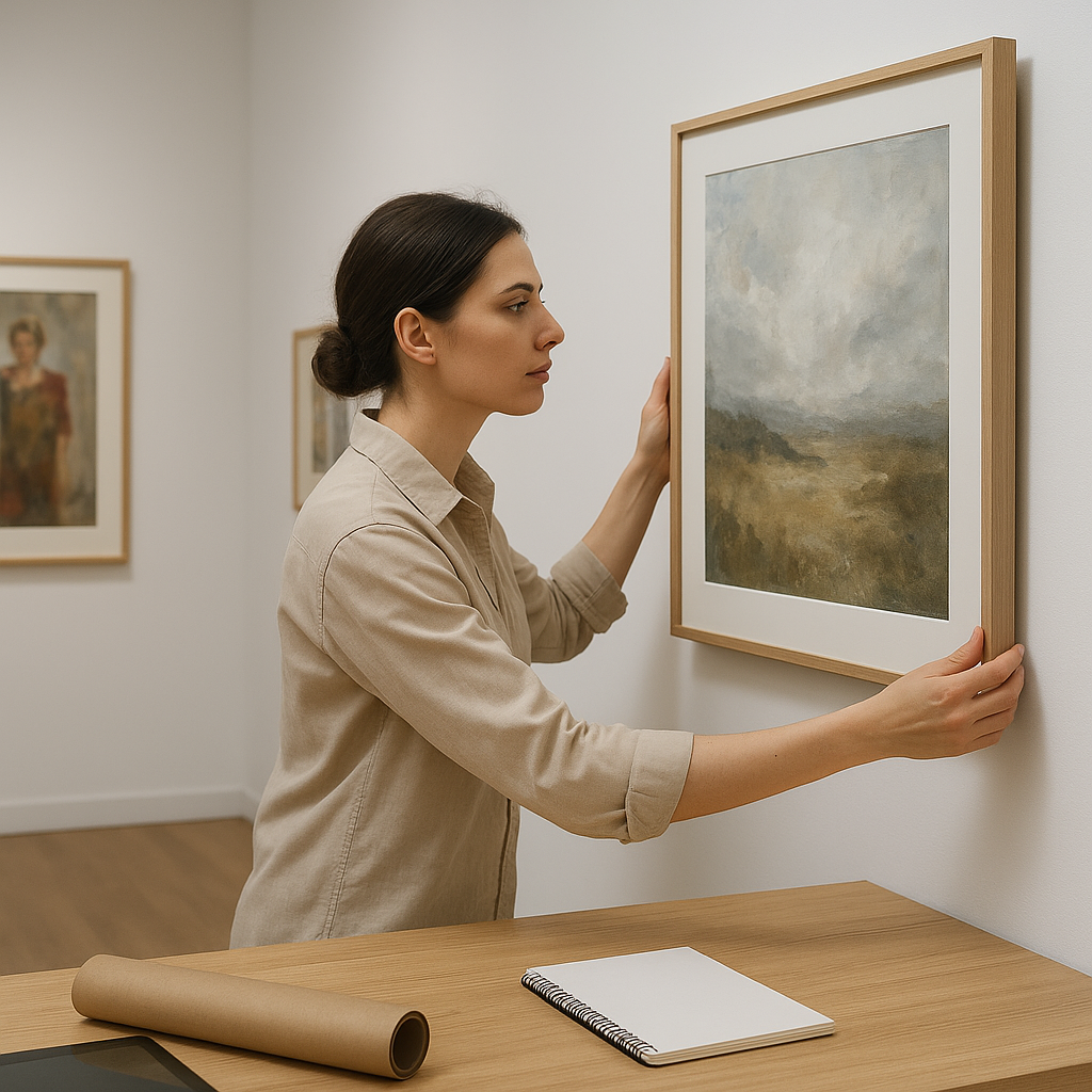 Asystenci kuratora sporządzają szczegółowe katalogi zawierające opisy, wymiary i fotografie poszczególnych prac. Na podstawie tych dokumentów tworzy się plan rozmieszczenia i przygotowuje materiały promocyjne.